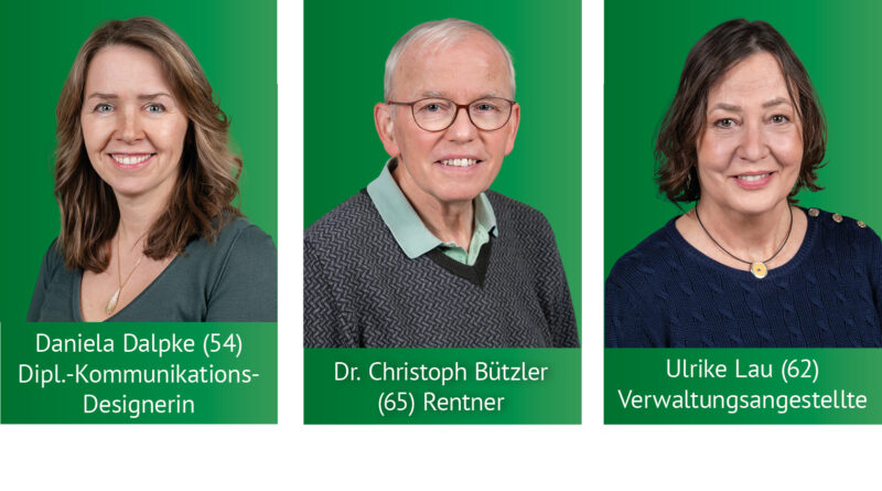 V.l.n.r: Fortuna Marx, Oecotrophologin, Pädagogin in Rente, Listenplatz 16; Andreas Lau, Fotograf, Listenplatz 21; Dr. Katrin Rose, Software-Entwicklerin, Listenplatz 19. In dieser Artikelserie stellen die GRÜNEN alle 15 Kandidatinnen und…