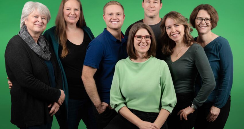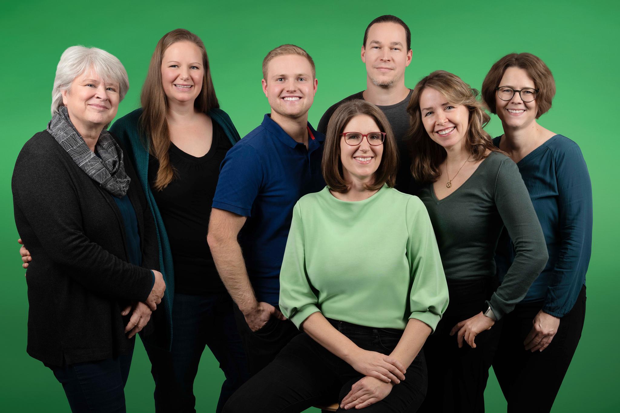 Beim Fototermin mit dem Roßdörfer Fotografen von „Die Blende“ war die Stimmung im Team sehr locker. Andreas Lau hat das sehr professionell organisiert. Und alle sind sehr zufrieden mit dem Ergebnis. Das Bild zeigt die ersten sieben Kandidatinnen und Kandidaten der 23-köpfigen Liste.