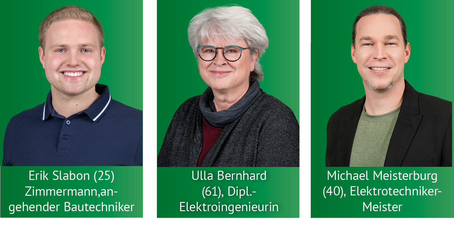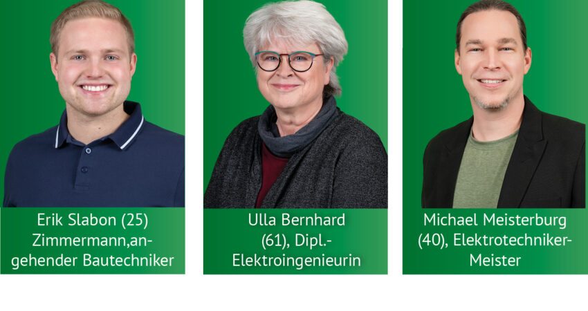 V.l.n.r: Erik Slabon. Listenplatz 4, Ulla Bernhard, Listenplatz 7, Michael Meisterburg, Listenplatz 6