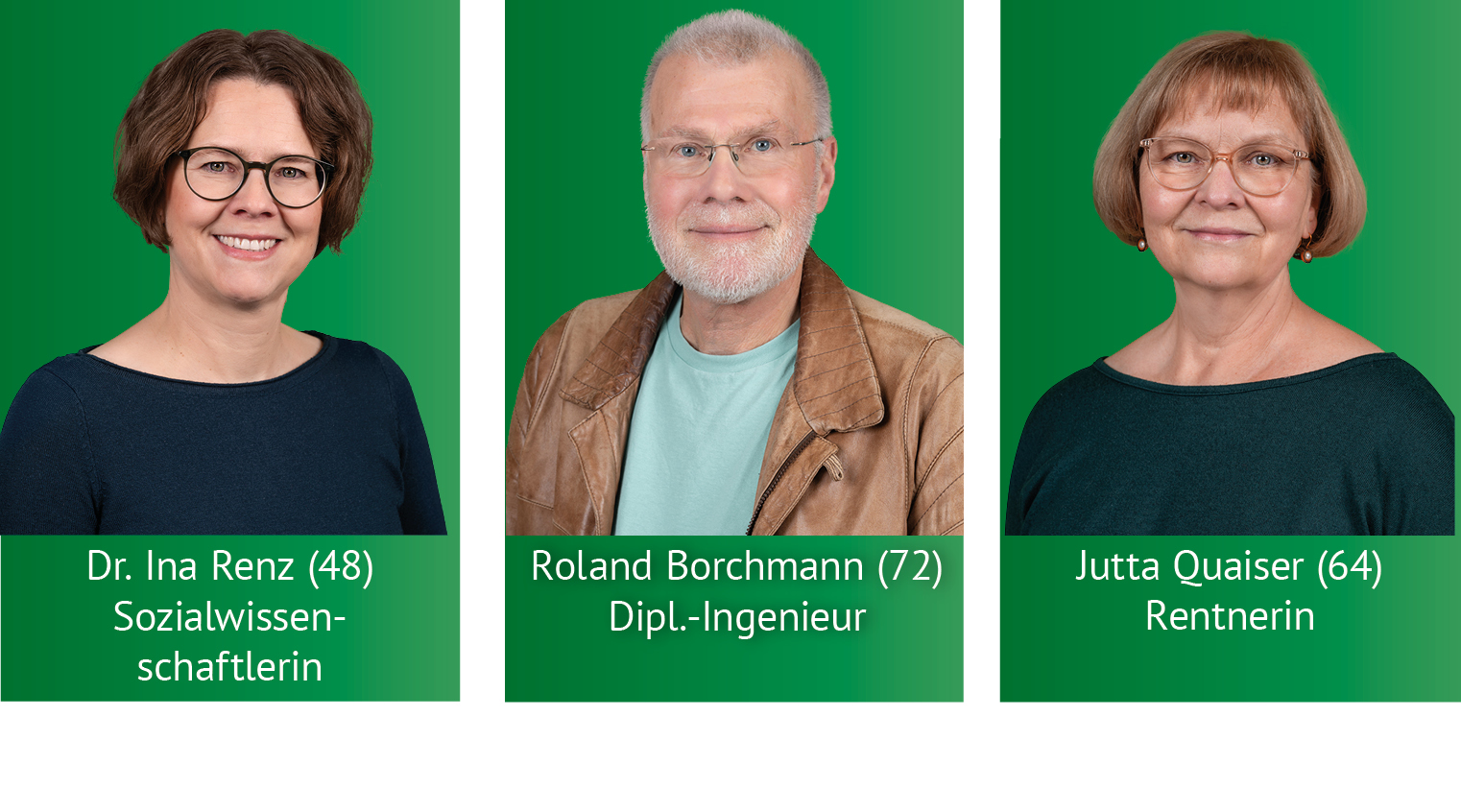 V.l.n.r: Dr. Ina Renz, Listenplatz 3, Sozialwissenschaftlerin; Roland Borchmann, Diplomingenieur, Listenplatz 13; Jutta Quaiser, Rentnerin; Listenplatz 15