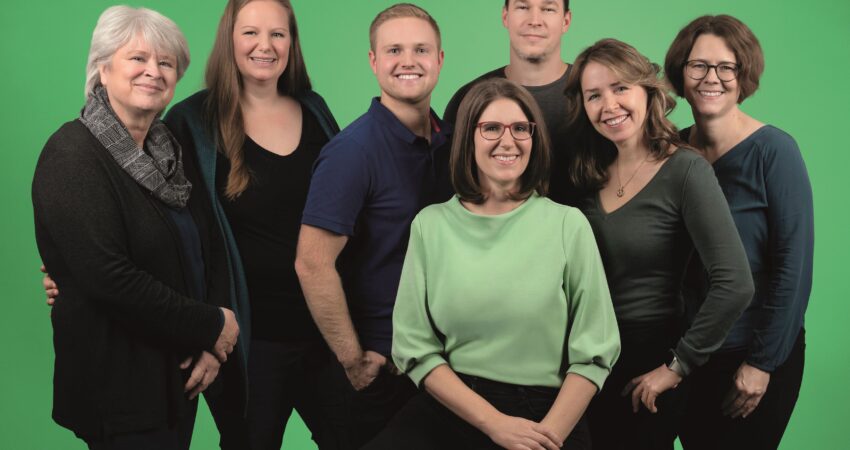 Die ersten sieben der GRÜNEN Liste werden zum Gespräch bereitstehen. Hier von links nach rechts: Ulla Bernhard, Platz 7; Kerstin Schuchmann, Platz 5; Erik Slabon, Platz 4; Astrid Kaufmann, Platz 1; Michael Meisterburg, Platz 6; Daniela Dalpke, Platz 2; Ina Renz, Platz 3